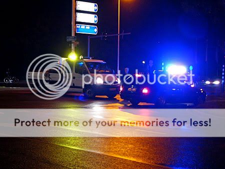 Eerst hield een politiewagen al het verkeer tegen, tot een werkwagen van de gemeente de weg met borden afzette.