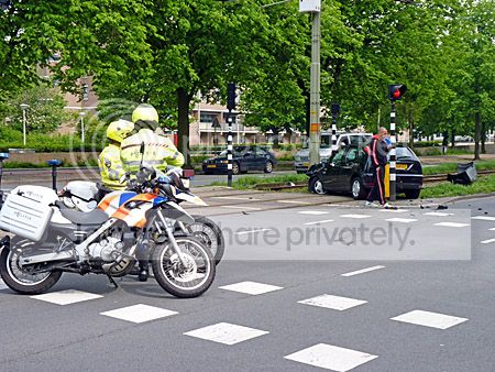 Een aanrijding op de Noordwest Buitensingel gistermiddag laat leidde tot 2 wagens die totall loss waren en Randstadrail die niet meer door kon rijden.