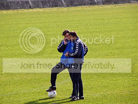 Op de tribune stonden twee agenten alles in de gaten te houden wat zeer ongebruikelijk is voor een training.