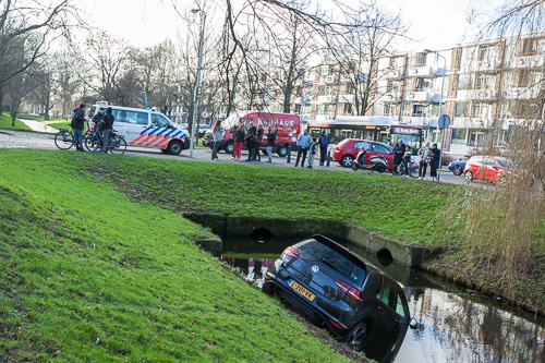 Vanmiddag hoorde ik allemaal sirenes. Op de P2000 pagina was te lezen, dat op de Hengelolaan een auto te water was geraakt.