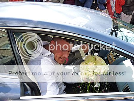 Even voor 15.00 uur kwam de wagen van Michael van der Plas met het trouwboeket aan bij het stadhuis aan de Dagelijkse Groenmarkt in een luxe wagen