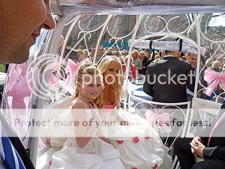 Ruim na 15.00 uur kwam zij aan in een prachtige koets met zwarte paarden, samen met een bruidsmeisje en haar vader.