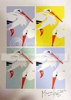 Een prachtig gesigneerde kunstprint met, jawel, ooievaars erop!