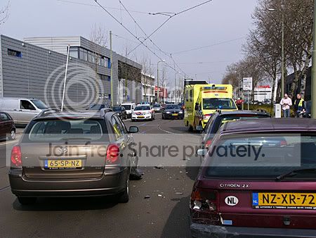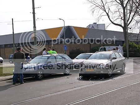 Gisteren reden we naar Slager om een stuurhoes aan te schaffen en daar zagen we, vlak bij de tramremise, twee auto’s die tegen elkaar waren gebotst.