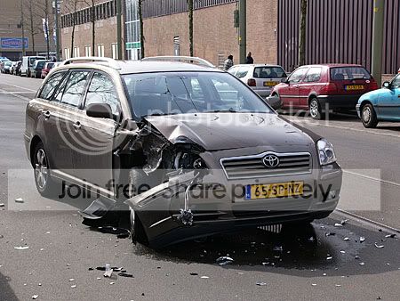 Voor de bestuurders van deze twee wagens is het wat minder plezierig. Zeker voor de Toyota-rijder. Die is wel heel erg in de kreukels.