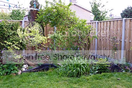 Een laatste foto van de omgeving rond het vijvertje dat dagelijks als bad wordt gebruikt voor de vogels met de vele (oranje) lelies ernaast, een olijf die volgens mij de winter niet heeft overleefd, een vijg, die blad begint te krijgen en een heerlijke maggiplant. Ook de akelei en boshyacint staan nog uitbundig in bloei.