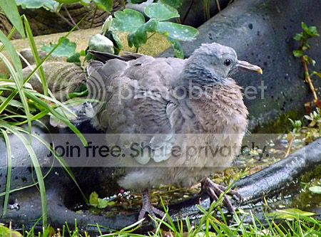 Het water is zeker met de warme en droge dagen een ideale plaats voor de vogels, zoals ook deze jonge houtduif die wat drinkt en zich lekker baddert.