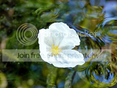 Ik zag een piepklein teer bloempje (ik denk een centimeter groot) boven het water uit steken en was benieuwd uit welke plant hij kwam. Toen ik de plant eronder optilde, zag ik tot mijn verbazing dat de bloem aan de waterpest vastzat.