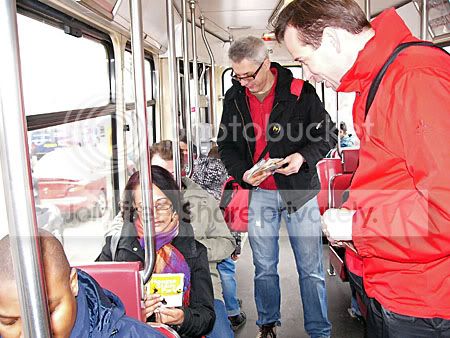 Vandaag hield ook de Haagse Stadspartij (HSP) een flyeractie. Niet alleen gewoon “op de vloer” maar in de tram.