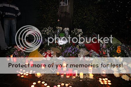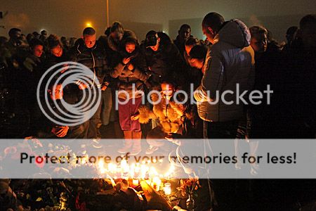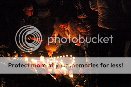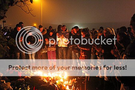 Bij de herdenking werden kaarsen aangestoken bij de vele bloemen en foto van de overledene  die bij de plek waren neergelegd.