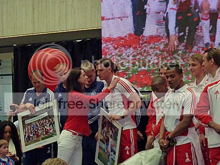 Nog even een groepsfoto met de schaal, en daarna konden kinderen een handtekening krijgen en volwassenen met de schaal op de foto.