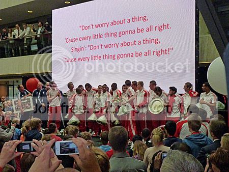Natuurlijk werd ook de schaal getoond en werden de spelers toegezongen,
