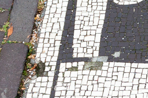 Er missen steentjes door het vele lopen over de stoep en hier en daar lijkt het, alsof kauwgom zich heeft “genesteld”.