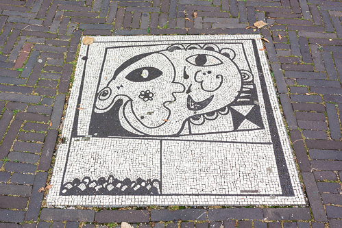 Het doet een beetje denken aan Picasso. Maar dat is het echt niet. Dit Mozaïek is gemaakt door Paul van Solingen.