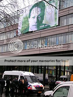 Vandaar dat zij op 4 maart een groot bankbiljet aan de gevel van het ministerie van Financiën hebben gehangen met daarop het hoofd van minister Bos, windmolens en bossen die verwijzen naar de klimaatcrisis.