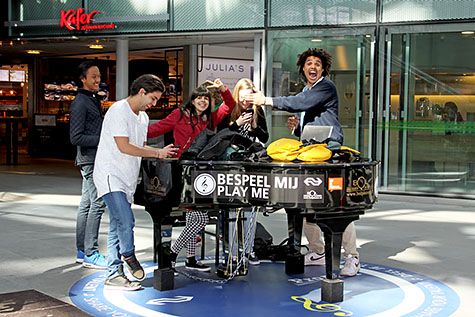 En ja hoor, een groep jongeren was druk bezig met een eigen stuk op de piano. Rappend, pianospelend en zingend galmde de muziek door de stationshal. Af en toe stonden mensen even stil om te luisteren.