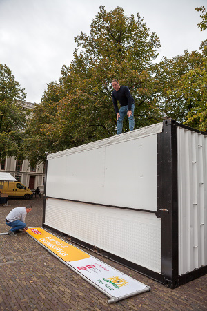 Gisteren zag ik Peter Boelhouwer en Marcel de Heer van DB Evenementen druk doende met het opbouwen van een “huisje. Ik wist toen nog niet wat daar ging gebeuren. Dat Den Haag ook welwillend stond tegenover de polsbandjes wist ik wel.