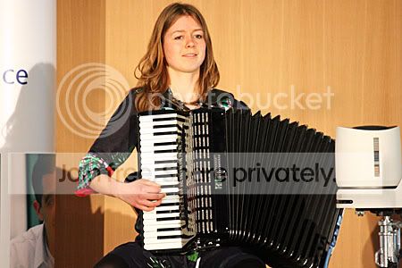 Na haar toespraak was er een muzikaal intermezzo van onder andere een meisje dat op een accordeon speelde (bewust?).