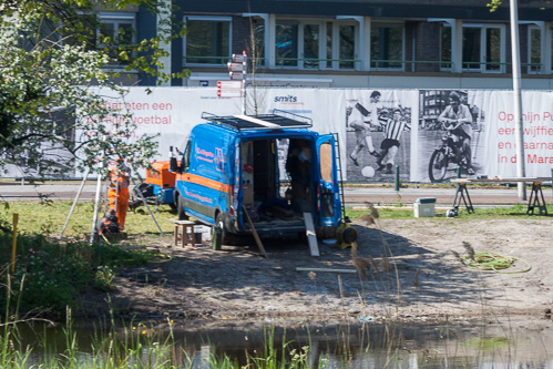 Dan wordt er gewerkt op de hoek Erasmusweg langs de trambaan/ Assumburgweg.