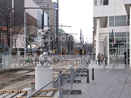 Maar, zoals je al kan zien, het Spui ligt volledig open gebroken. De herinrichting van het winkelgebied is zoals ik ook al hier schreef, druk gaande (met ook alle ellende voor het verkeer en openbaar vervoer dat er niet meer langskomt).
