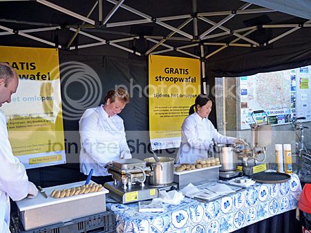 Om de overlast enigszins te verzachten, werden warme stroopwafels uitgedeeld.