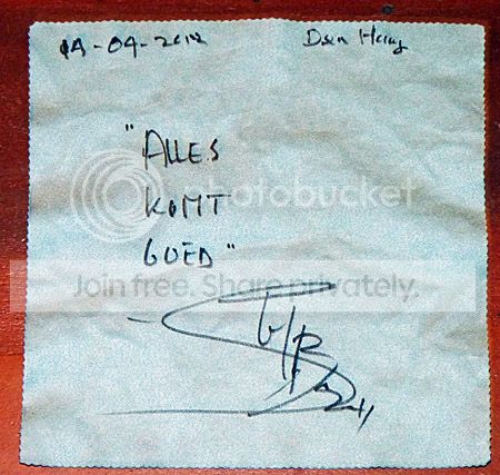 Als ‘toetje’ was er nog iets voor mij. Mijn camera heb ik eigenlijk van mijn vader gehad. Op het lenzenschoonmaakdoekje kreeg ik zijn handtekening met een stukje tekst ‘alles komt goed’. Ook dit was waar hij het over had tijdens zijn inleiding bij het pessimisme wat overheerst tegenwoordig. Alles komt goed; wat meer vertrouwen.