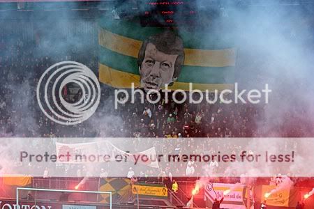 Een prachtig doek was zichtbaar op de tribune, samen met een spandoek met zijn geboorte- (14-4-1944) en sterfdag. Voor aanvang van de wedstrijd werd vuurwerk afgestoken; een mooi gezicht.