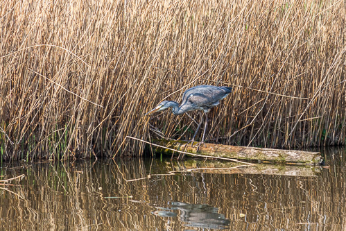 reiger: zou die een kiekker zien? De vroege voorjaarsbollen zijn nu echt allemaal uitgebloeid en nu bloeien diverse stinsenplanten en beginnen alle bomen groen te worden.