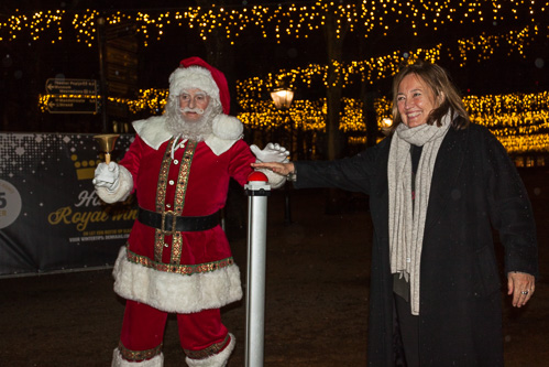 Wethouder Bruines ontsteekt met Kerstman lichtjeshemel Lange Voorhout