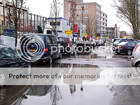 Het gevolg was, dat de hele laan blank kwam te staan.Wel een komisch gezicht als wagens voorbij reden; het water spatte hoog op.
