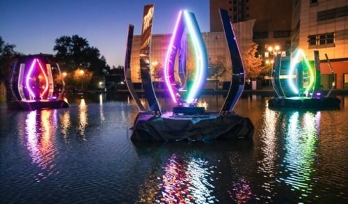 Drijvende kunstwerken die licht geven komen op de Hofvijver. (Foto: The Hague Highlights) Lichtkunst op Hofvijver, Lange Voorhout, Gevangenpoort en Raad van State