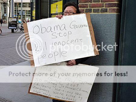 Een oproep aan Obama om te stoppen met het doden van onschuldige mensen.