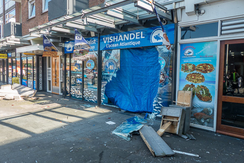 Auto rijdt pui viswinkel Ambachtsgaarde aan gort