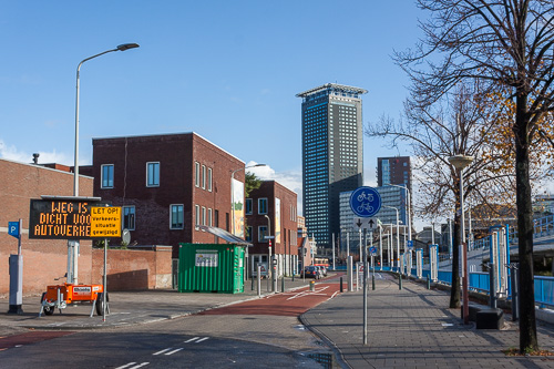 De vernauwing op de Parallelweg met de Pollers op het fietspad Lang was men vlak voor Hollands Spoor druk bezig op de Parallelweg. Zoals de meeste mensen wel weten, althans, de mensen die in die omgeving wonen, is het niet meer mogelijk deze weg te gebruiken rond het Station.