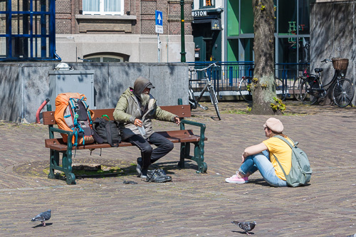 Een portocabin bij corona voor dak- en thuislozen (Dak- of thuisloze op het Plein tijdens de coronacrisis in gesprek met een vrouw) Toen ik zoeven het AD lies, viel mijn mond open van verbazing. Een portocabin voor dak- en thuislozen bij Corona en/of andere ziekte bij het ADO stadion?