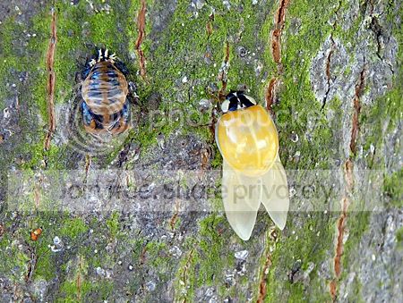 Het mooie weer van vandaag zorgde ervoor, dat de laatste generatie veelkleurig aziatische lieveheersbeestjes uit hun pop kropen.