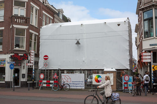 Deze week fietste ik over de Wagenstraat en zag, dat nu de Tweede Chinese Poort helemaal ingepakt was.
