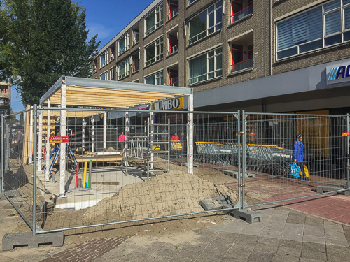 Overigens, aan de overzijde van het winkelcentrum (bij onder andere de AH) waren al eerder de kiosken van steen die er stonden verbouwd. Maar daarover later meer. -