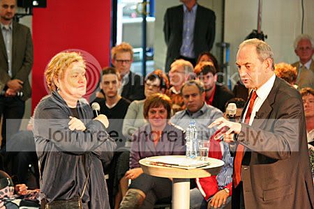 Een zeer boze mevrouw die nu eindelijk wel eens aan de beurt wilde komen met haar vraag (zij stond al lang te wachten) en haar ongenoegen ook liet blijken wist hij te kalmeren en zelfs de hele zaal te laten lachen met de opmerking “u kijkt zo lief” refererend naar de “blunder” van Balkenende.