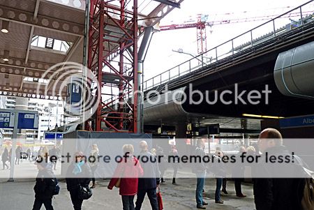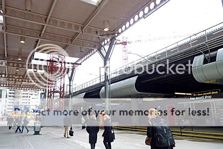 Vanaf vorige week zijn diverse kolommen geplaatst die het nieuwe glazen dak van het station gaan ondersteunen (de palen die uitlopen op een V op de foto).