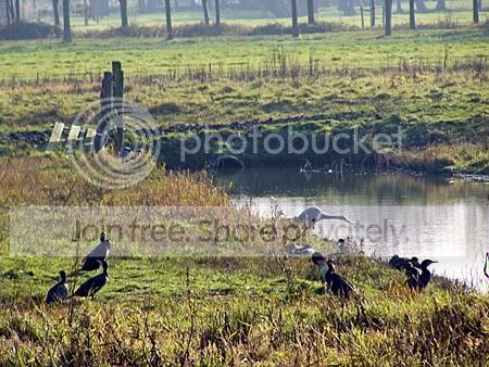 Maar ook de aalscholvers, naast een reiger, warmden zich op.
