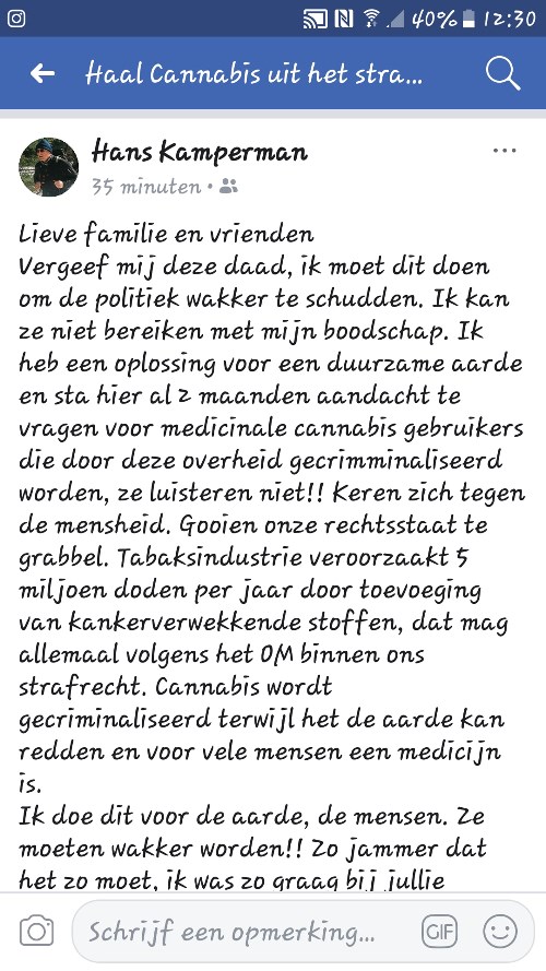 Dit deed hij, om te bereiken dat de overheid cannabis uit het strafrecht haalt.