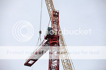 Het hoogtepunt van deze werkzaamheden is het inhijsen van de giek van de torenkraan. Deze giek is 74 meter lang en werd in 1 geheel over het flatgebouw heen gehesen worden. Wegens het mooie weer werd deze niet morgen, maar al vandaag geplaatst.